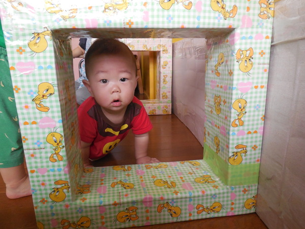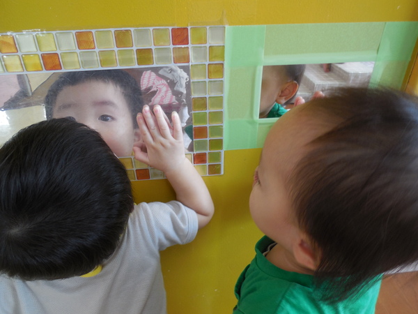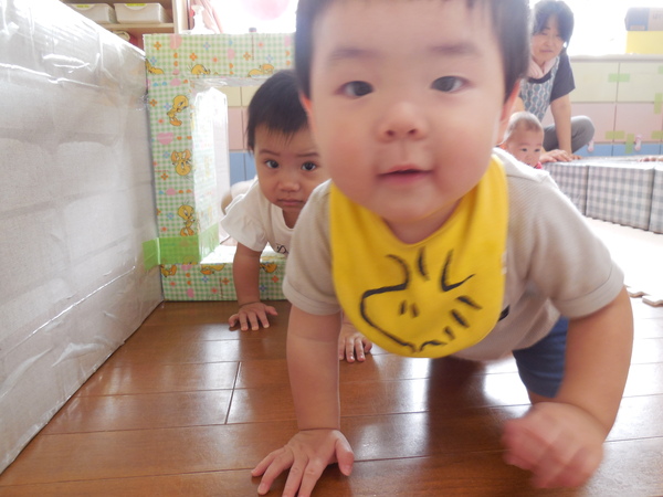 ばあ〜≠チて楽しいな! (ひよこぐみ) お部屋の壁にある鏡をのぞいて、自分の顔が映ってキャッキャ!と嬉しそうにはしゃぐ子どもたち! おもしろくて何度もばあ〜≠していましたよ! 四角のトンネルも大好きでよく顔をのぞかせて、楽しんでいます! 2025/09/26