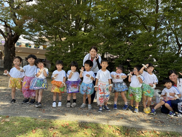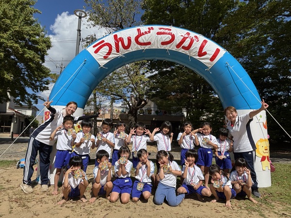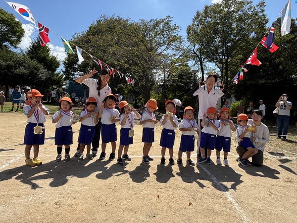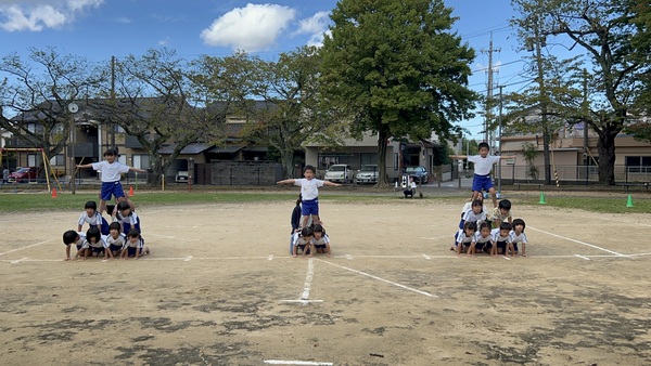 園生活最後の運動会! (まつぐみ) リレー、ダンシング玉入れ、障害物走、組体操‥ どの競技も本当によく頑張りました!! 特に組体操は6月くらいから体操教室で新しい技を教わり、繰り返し練習をしていきました。 本番は、暑い中で疲れも出てくる終盤‥それでもしっかりと技を決めかっこよかったです!!お家の方の応援もパワーになったと思います! 温かく見守っていただき、ありがとうございました!! 2025/10/03