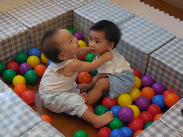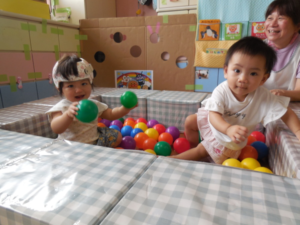 ボールプールで遊んだよ! (ひよこぐみ) ボールプールができると、サークルにつかまって伝い歩きをしたり、乗り越えたり、サークルの上をハイハイしたり、歩いたり…。 子どもたちそれぞれに体を動かして遊んでいます! ボールプールの中に座って、リラックスしている子もいます! 2025/10/09