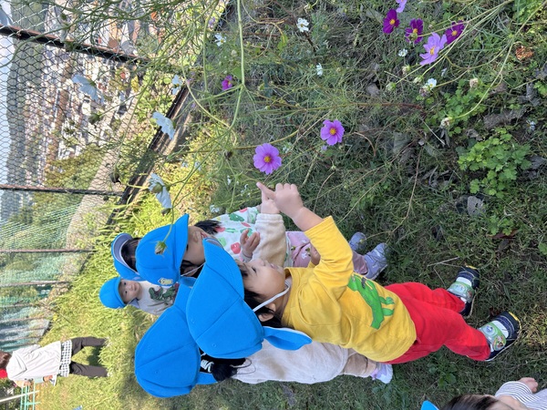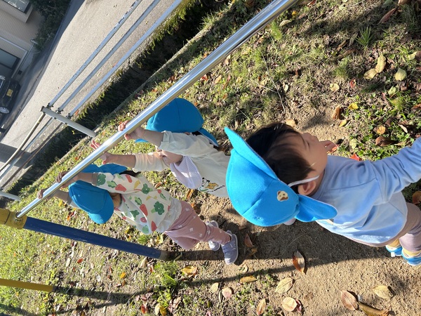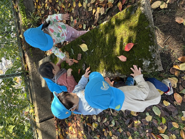 秋の遠足 (うさぎぐみ) 気持ちのいい遠足日和の日に、皆で少し離れた小立野二丁目南小公園まで行ってきました! フェンスの向こうにはたくさんの家やお店が立っているのが見え、皆で「イオン!!」とスーパーを見つけたり、落ち葉で「ください」「ちゃりん!」と簡単なやり取りをしながらお店屋さんごっこをしました! 皆で仲良く手を繋いで、長い距離を頑張って歩くことが出来た子どもたちでしたよ! 2025/11/13