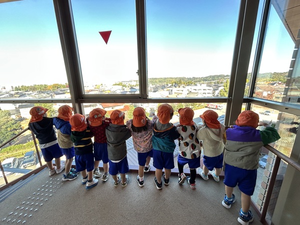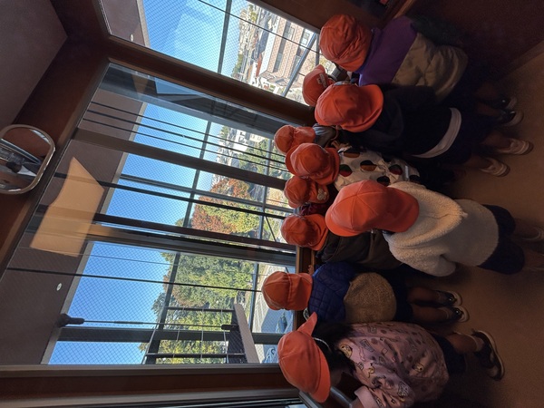 県立図書館! (うめぐみ) みんな大好き図書館♪エレベーターに乗って4階まで行きました。「たかーい!」「人ちっちゃい!」と景色を楽しんでいましたよ!下りる時もエレベーターを使い、下りている最中の「おー!」というみんなの声がとても可愛かったです! その後は、こどもエリアのおはなしの森へ行き、絵本を読んだり、かくれんぼをしたり、自然物探ししたりして楽しみましたよ! 2025/11/13
