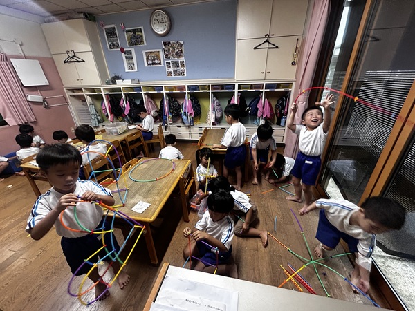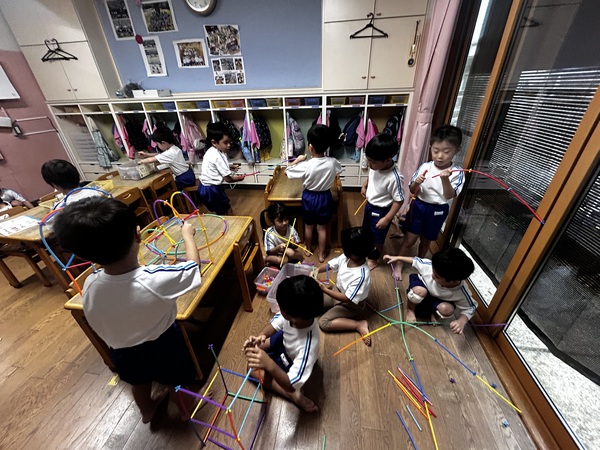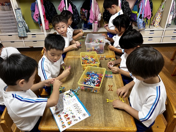 新しいおもちゃ (ふじぐみ) いくつか新しいおもちゃが増え、みんな大喜び! 説明書を見ながら遊び始める子や自分なりに考えて遊び始める子など様々で見ていて面白いです(笑) 色んな発想が生まれてくるので感心します。 一緒に遊びながら保育士も作り方を教わったり、みんな大作を作り上げて楽しんでいます! 2025/11/13
