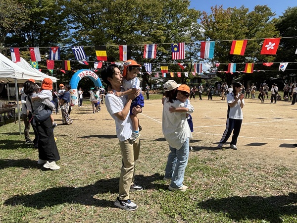 初めての運動会☆ (うめぐみ) 子どもたちも楽しみにしていた運動会!初めて経験する環境に、緊張している子もいましたが、みんなとても頑張っていました‼うめ組は、かけっこ・遊戯・運動遊びに参加し、練習通り楽しんでくれていたのが印象的でした。子どもたちの堂々とした姿に、成長を感じ感極まった保育者です…!全競技の最後は、フォークダンス♪一生懸命頑張った子どもたちへのご褒美に、大好きなお家の方に抱っこしてもらい、とても嬉しそうなうめ組さんでした! 2025/10/03