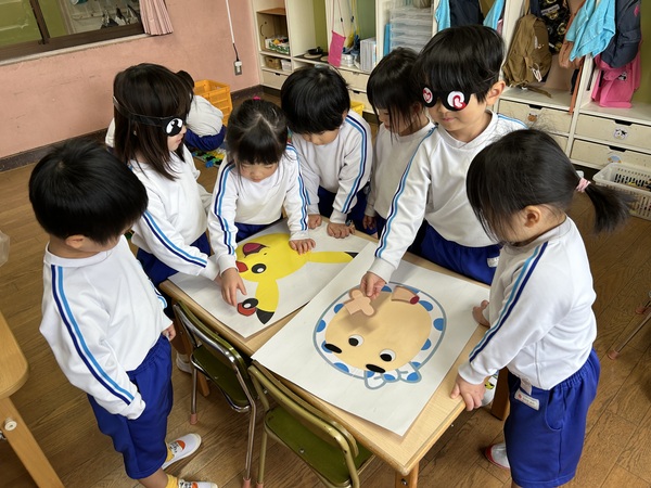 お正月あそび (うめぐみ) 年末年始明け、久しぶりに登園してきた子どもたちは元気いっぱい!楽しかったお話も沢山聞かせてくれましたよ。 新年会で、福笑いやすごろくをした事で興味が湧き、クラス内でも楽しむ姿が見られています!カルタでは字が読めなくても、絵を見ながら「陰で鬼ごっこしてる人!」「プリンセスごっこ!」とお友だちが言うと、その言葉に合った絵札を探していますよ。子どもたちが考えた言葉が、可愛くて面白くてクスッと笑わせてくれます! 2026/01/15