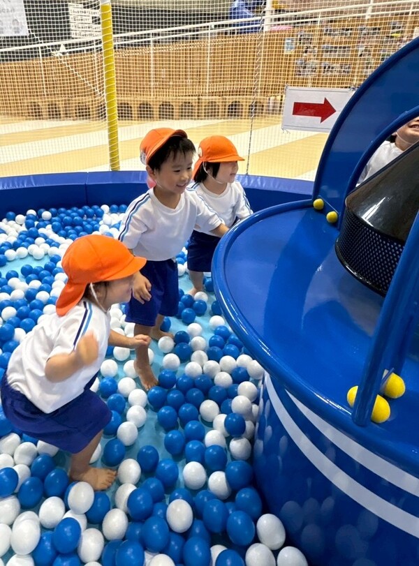 初めてのバス遠足♪ (うめぐみ) みんなが楽しみにしていたバス遠足!バスを見た瞬間から大興奮で、バス内もおしゃべりが止まらない子どもたちでした☆かほっくるに着き、遊ぶ時のお約束を聞いてから、自由に遊び始めました。ボールプールやエアトランポリン、ネットやグルグル滑り台など、全力で遊んでいて可愛かったです!「お腹すいた〜」と待ちに待ったお弁当の時間!終始笑顔で「先生!これ見て!」「美味しいね!」会話をしながら完食していましたよ♪帰りのバス内は、行きとは違い、お喋り少なめでウトウト気味のうめ組さんでした(笑) 2025/09/19