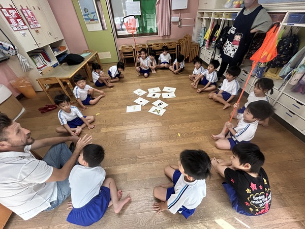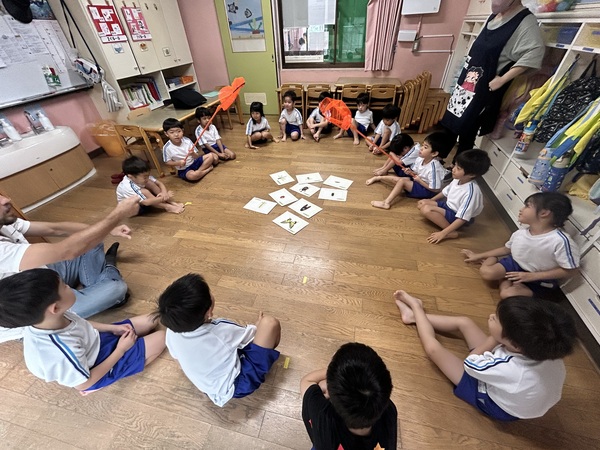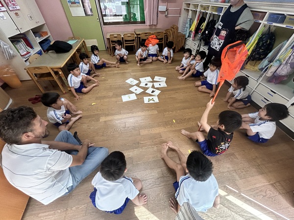 Bug Hunt (ふじぐみ) 英語教室でBug Hunt(虫取り)をしました! ちょうちょ・テントウ虫・トンボ・セミ・カマキリなど英語で教えてもらい、あっという間に覚えてしまうので、ライアン先生もビックリ! 発音も上手!ステキ!と褒めてもらい、みんなドヤ顔でした(笑) 2025/10/31