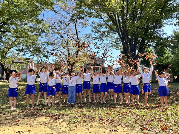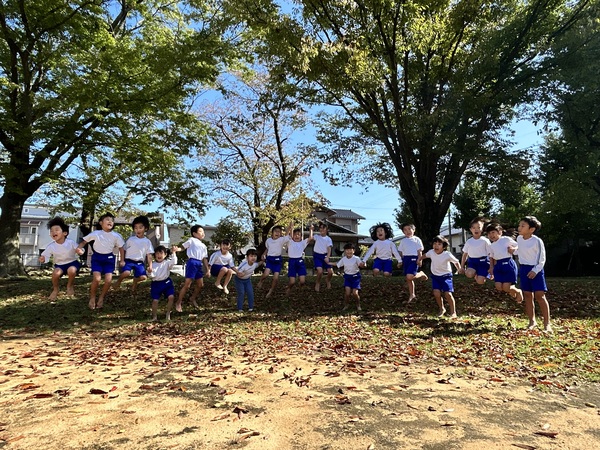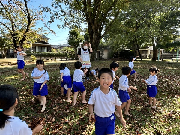 裸足で公園で遊んだよ! (まつぐみ) 裸足で葉っぱを踏むと「いい音する」と友だちと盛り上がったり、落ち葉を集めて、一気に投げてみたりと子どもたちも喜んで楽しんでいました! せっかくなので17人全員で声を合わせて落ち葉を投げてみたり、ジャンプしたり‥!秋を思いきり楽しむ姿がとっても生き生きして素敵でした。 2025/10/31