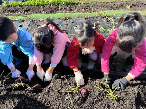 いもほり (うめぐみ) さつまいも掘りをしました! さつまいもが見えると「あったー!」と喜び、どんどん土を掘っていく子どもたち! すぐそこに見えてはいるのになかなか掘り起こせず苦戦していましたが、根気よくがんばって いました! 大きなさつまいもが採れると、大喜びのうめぐみさんでした! 2025/01/17